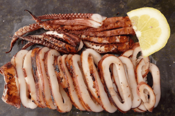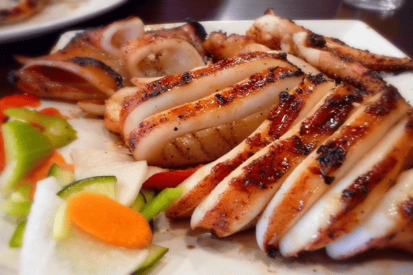 Mực lá nướng hấp dẫn từ màu sắc, hương thơm lan tỏa.Từng sớ thịt săn dai