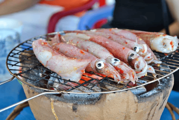 Ngoài ra thì Mực Ghim Trứng ướp gia vị nướng rất ngon : nướng sa tế, nướng muối ớt, ...