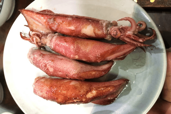 Ăn nóng mới ngon. Mực vừa mới hấp cuốn bánh tráng chấm kèm mắm tỏi ngon tuyệt vời.