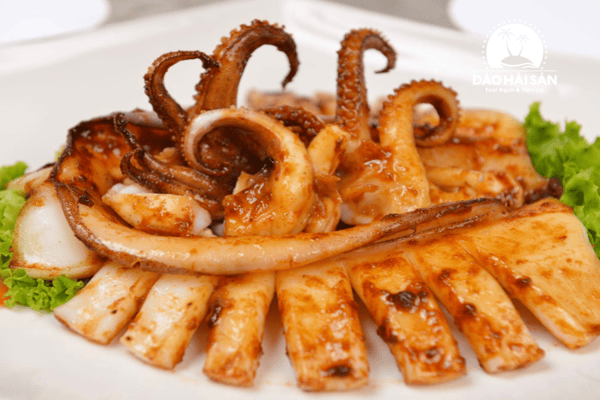 Mực mua về tẩm ướp gia vị và cho vào lò nướng tầm khoảng 10-15 phút, sau đó cắt nhỏ và thưởng thức